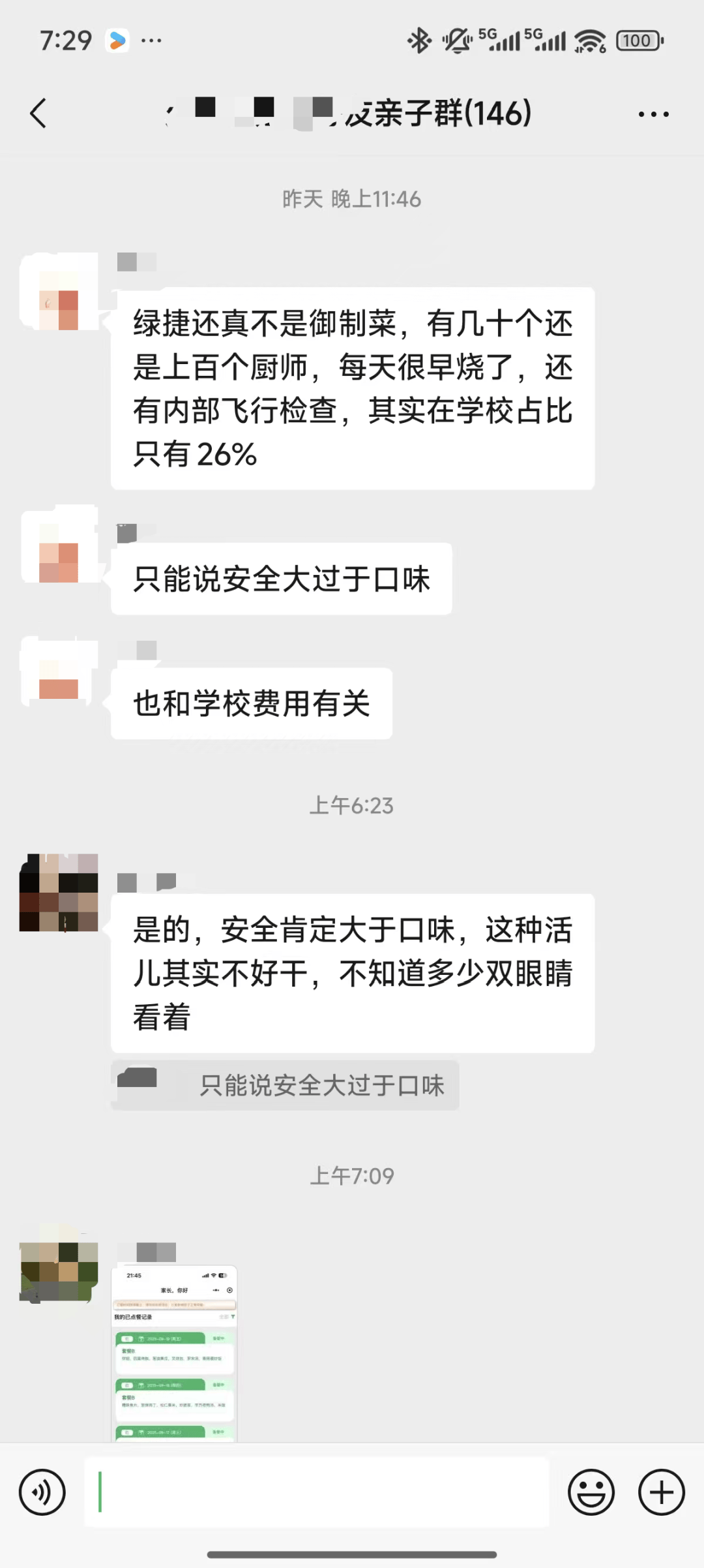 其实群里的家长还实说对了,像绿X这种大的外包商,和良多中小学都有合做,制做过程、卫生尺度等,必定都被几百双眼睛盯着的,“只能说平安大于口胃。”。